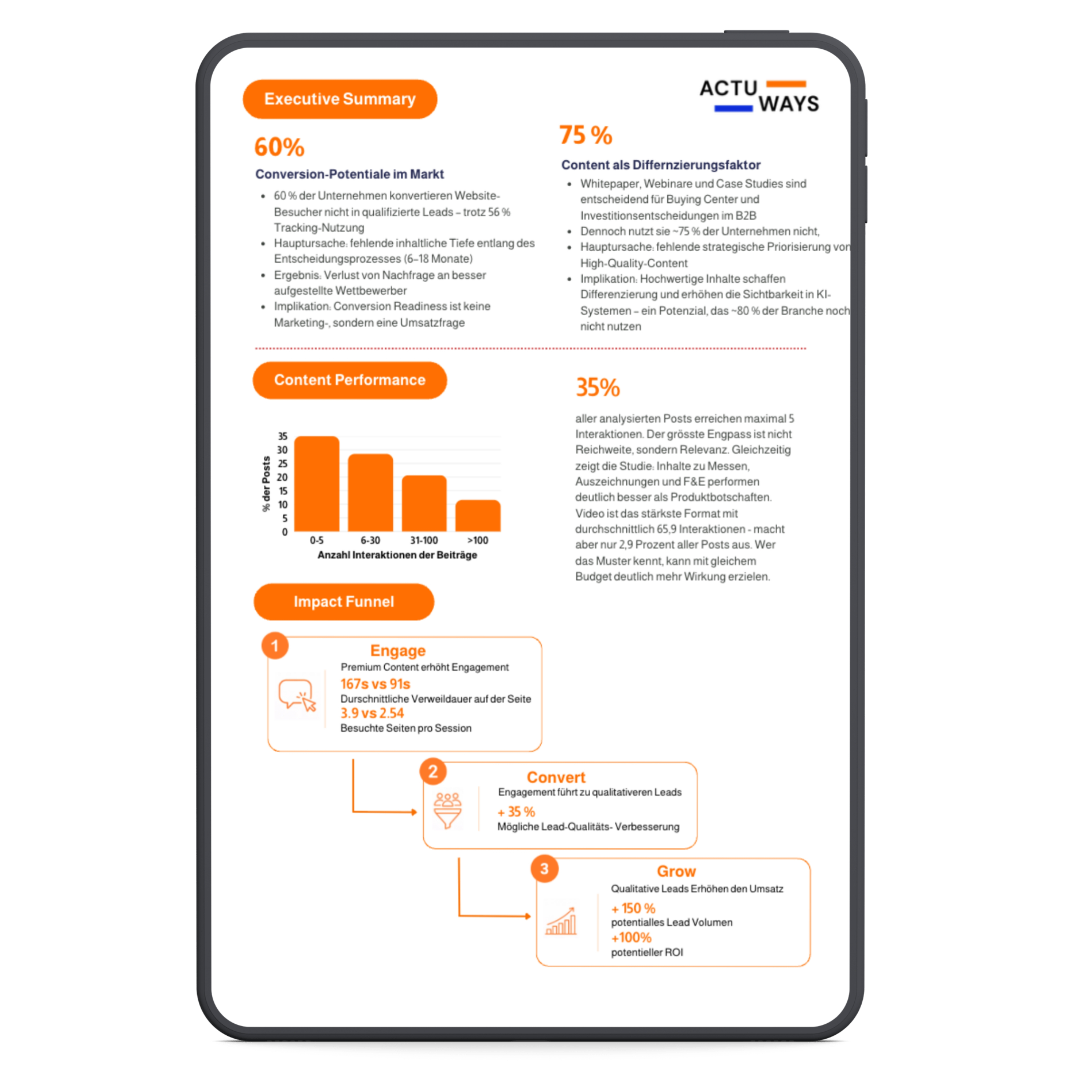 In einem optionalen, 20-minütigen Analyse-Call (kein Sales-Pitch!) übertragen wir die Studienergebnisse auf Ihr Unternehmen. Wir priorisieren gemeinsam die „Quick-Wins“, die Ihre Sales-Zyklen am effektivsten verkürzen.